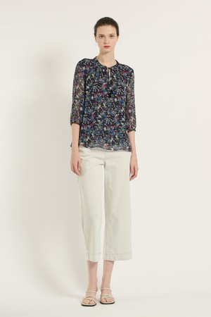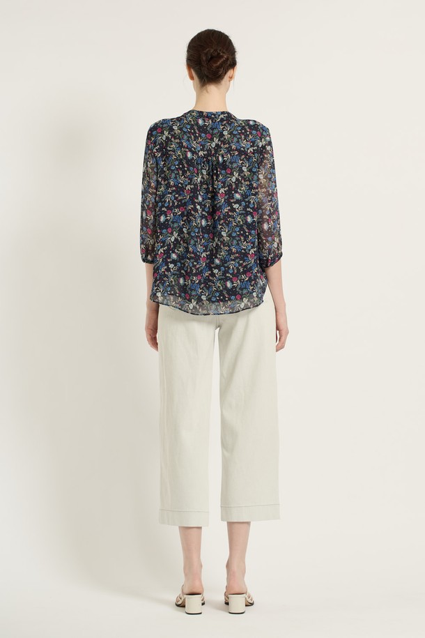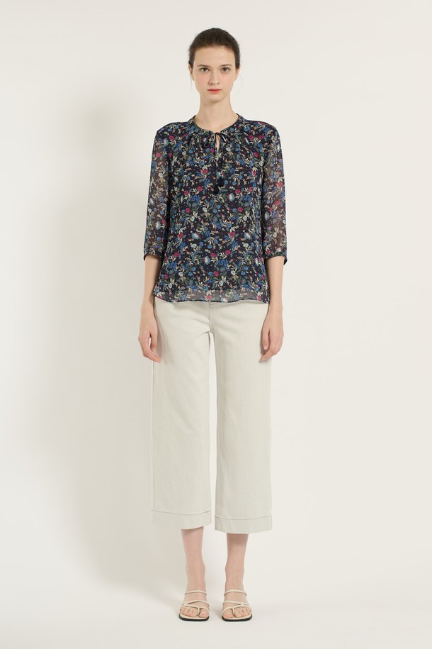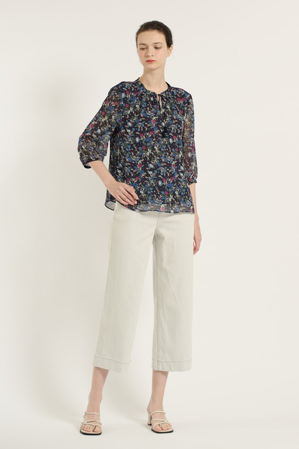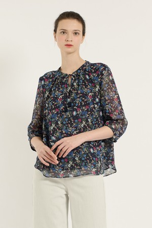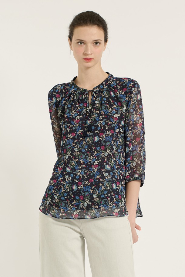 [25SU] 플라워 쉬폰 블라우스 - DARK NAVY B5B6B46256