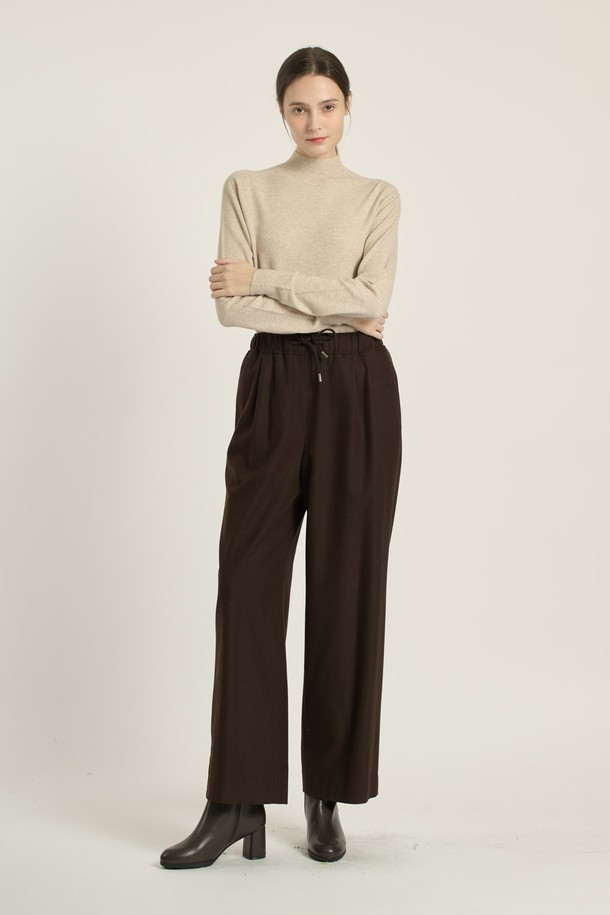 [25WT] 밴딩 턱 와이드 팬츠 - BROWN B5DAP32874