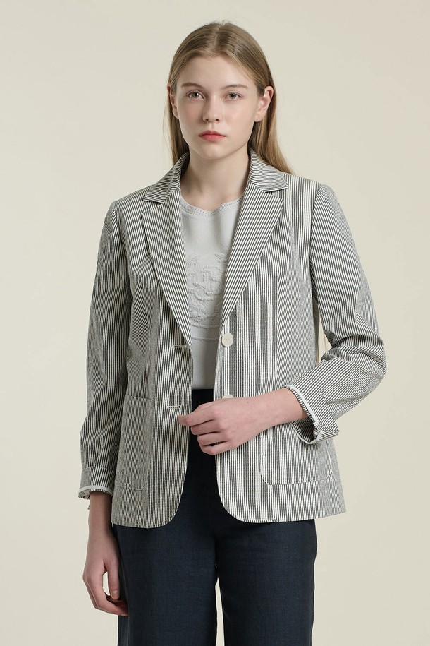 [26SU] 시어서커 테일러드 자켓 - BLACK B6B3J10199