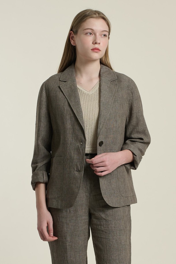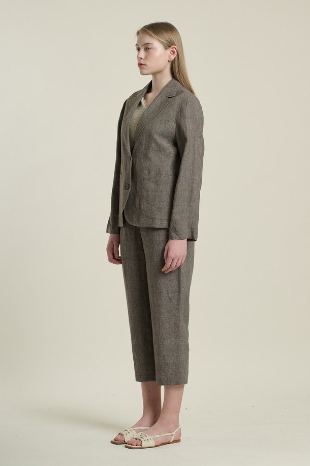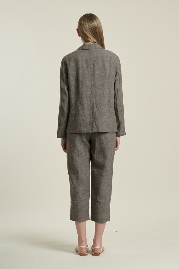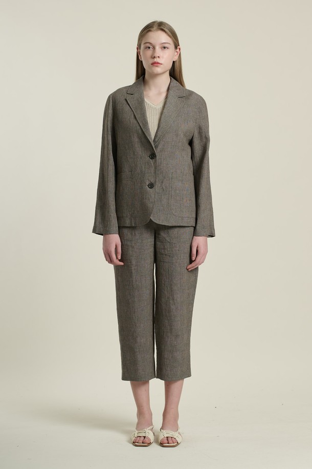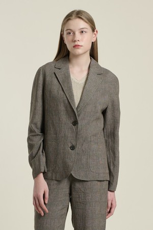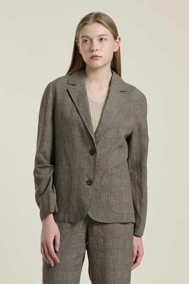 [26SU] 테일러드 카라 체크린넨 자켓 - M GRAY B6B4J12716