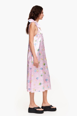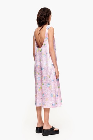 [23SS] 빔바이롤라 핑크 새틴 스프레이 플라워 슬리브리스 드레스 B235JWO008PKB