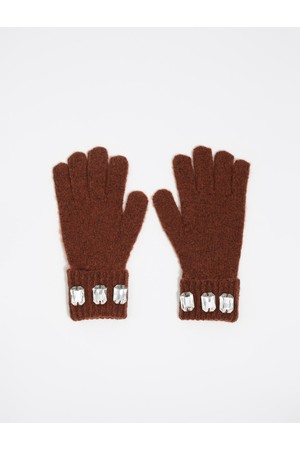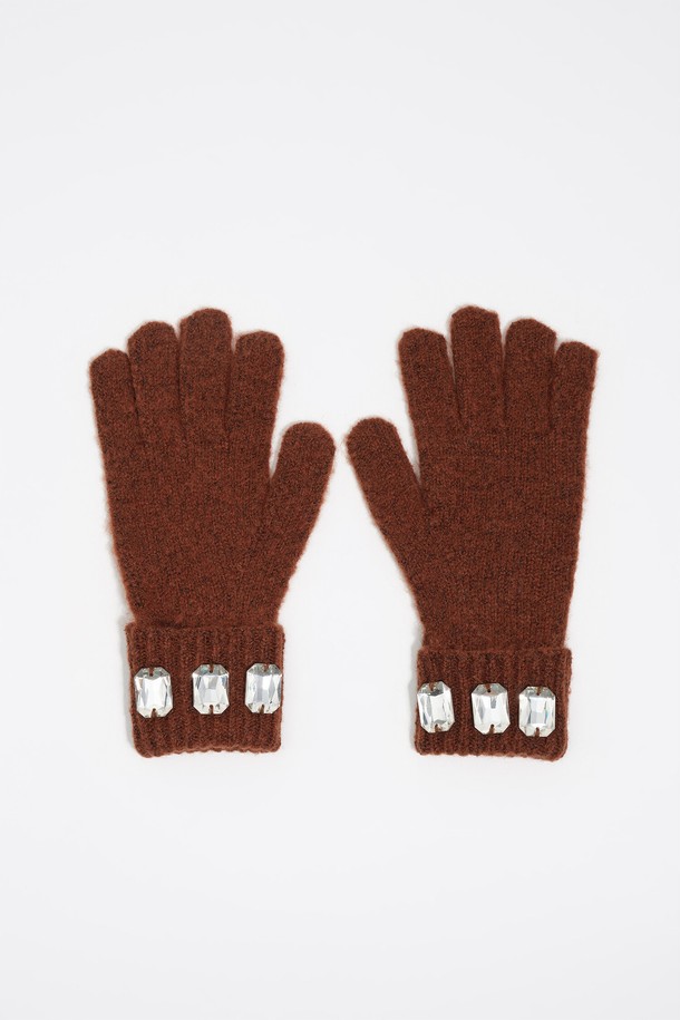 [25FW] 빔바이롤라 브라운 크리스탈 장식 니트 장갑 B256AIG008BRB