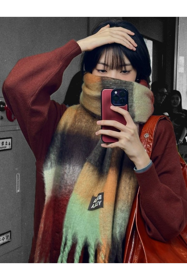 [25FW] 민트 체크 브러시드 스카프 B256AII022MTF