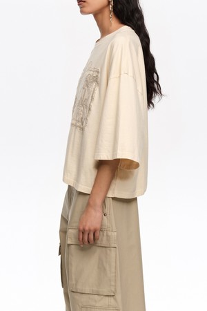 [26SS]빔바이롤라 맥시 브로드리 앙글레즈 로고 티셔츠 - 아이보리 B265AWT007IVB