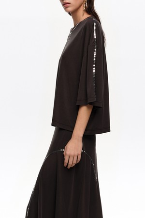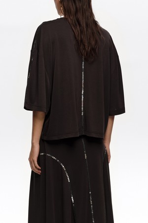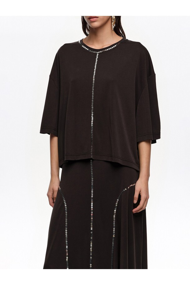 [26SS]빔바이롤라 플루이드 스팽글 티셔츠 - 워시드 블랙 B265AWT003BKB