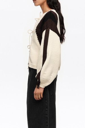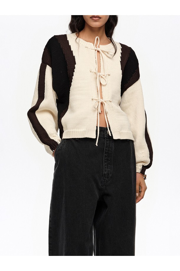 [26SS]빔바이롤라 트리컬러 타이 카디건 - 아이보리 B265AWG001IVB