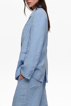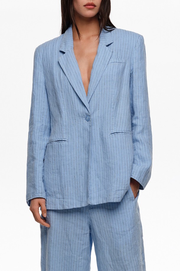 [26SS] 빔바이롤라 스트라이프 워시드 테일러드 자켓 - 블루 B265AWJ010BLA