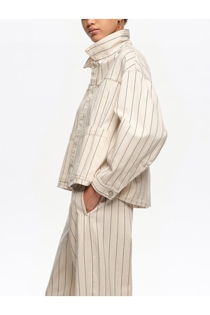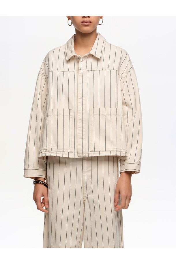 [26SS] 빔바이롤라 A라인 스트라이프 데님 재킷 - 오프화이트 B265AWJ006WHB