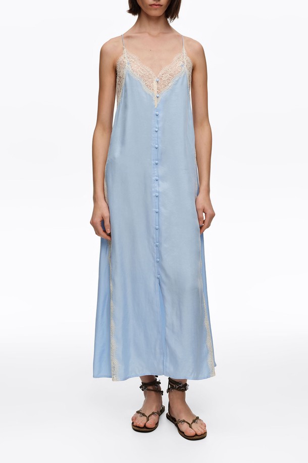 [26SS]빔바이롤라 컨트라스트 레이스 트림 슬립 드레스 - 블루 B265AWO011BLB