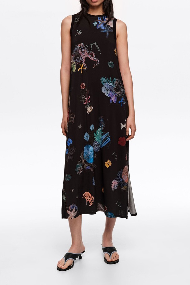 [26SS]빔바이롤라 시배드 플로잉 슬리브리스 티셔츠 드레스 - 블랙 B265AWO015BKB