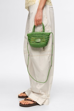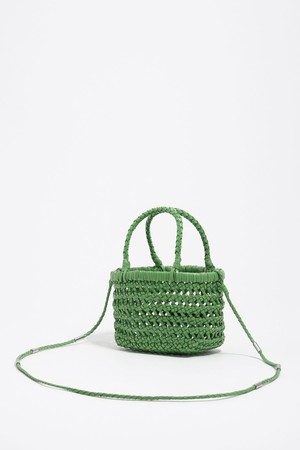 빔바이롤라의 레더 플레이티드 크로스 미니 백은 선명한 그린 컬러와 고급스러운 천연 소가죽 소재가 어우러진 여성용 가방입니다. 세밀한 위빙 디자인과 브랜드 플라크 장식이 특징이며, 바스켓과 버킷 형태가 조화를 이룬 감각적인 모양으로 제작되었습니다. 상단의 탑 핸들과 조절 가능한 크로스 스트랩을 활용해 토트백이나 크로스백으로 다양하게 연출할 수 있으며, 소지품 수납이 편리한 오픈형 잠금 방식을 채택했습니다. 클래식하면서도 미니멀한 디자인의 미니 사이즈 백으로 캐주얼한 스타일까지 폭넓게 소화할 수 있어 실용적입니다. 세련된 외관 덕분에 데이트룩, 모임룩은 물론 활동적인 여행룩까지 다양한 상황에서 포인트 아이템으로 활용하기 좋습니다.