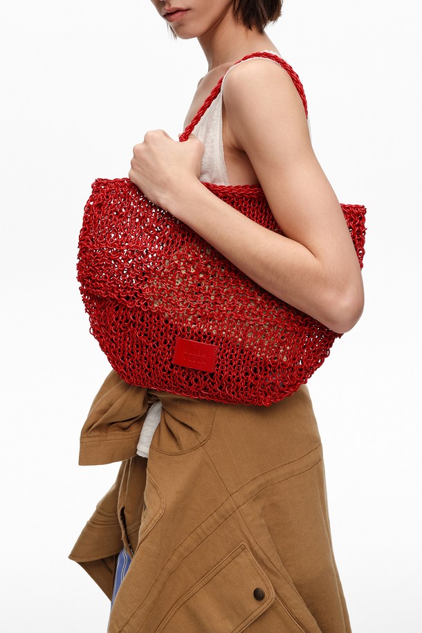 [26SS] 빔바이롤라 플레이티드 레더 숄더백 미디엄 - 레드 B265AIB066RDF