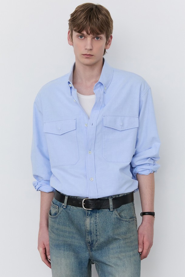 스카이 블루 웜코튼 오버핏 셔츠 (JNSH5C215B1)