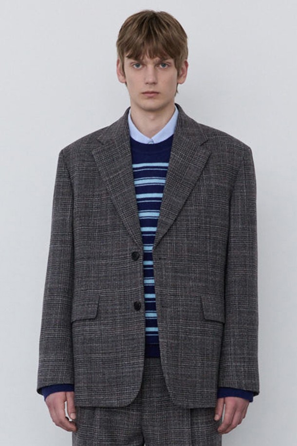 그레이 체크 세미오버핏 셋업 자켓 (JNJA5C282G2)
