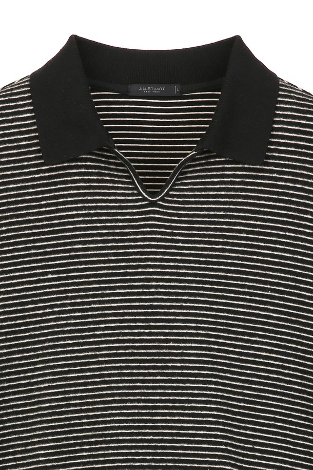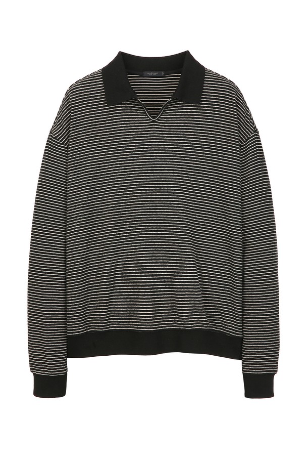 블랙 카라 세미오버핏 스트라이프 맨투맨 (JNTS5C201BK)