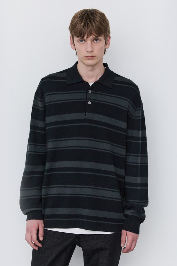 블랙 스트라이프 럭비 니트 (JNSW5C106BK)