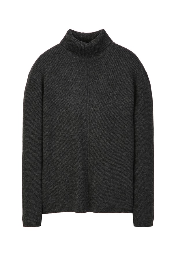차콜그레이 사선 텍스쳐 릴랙스핏 터틀넥 니트 (JNSW5D210CG)