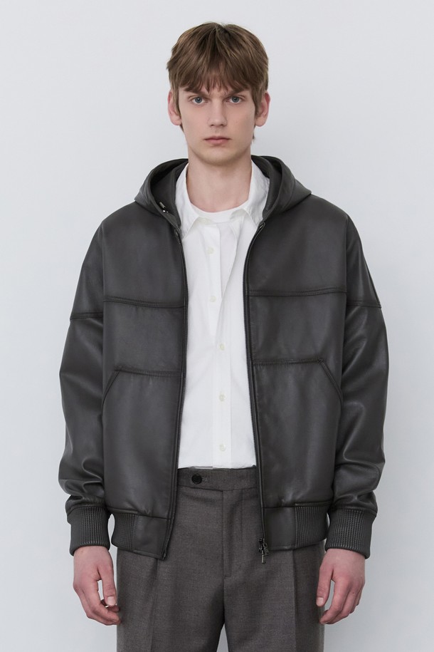 그레이 램스킨 오일 브러쉬 후드 점퍼 (JNJU5C506G2)