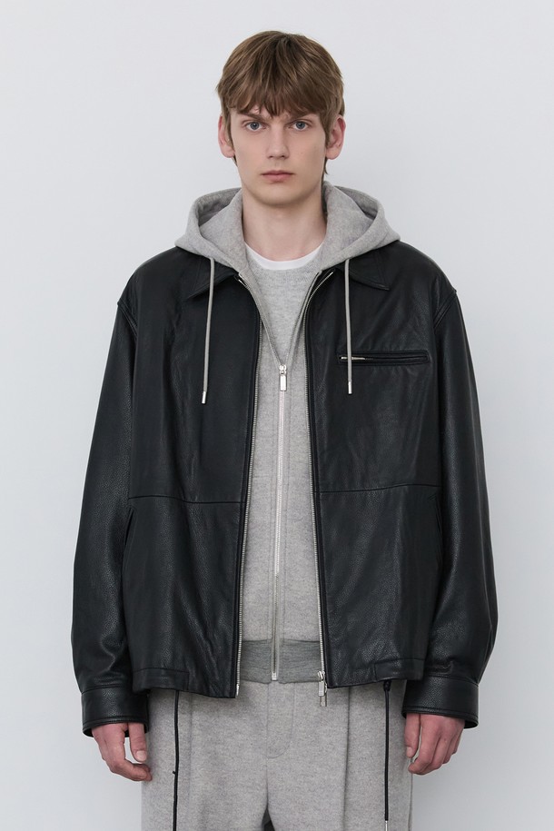 블랙 램스킨 세미오버 코치 점퍼 (JNJU5C507BK)