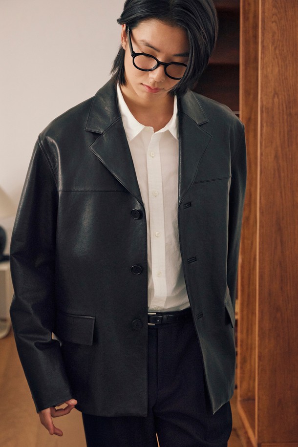 블랙 리얼레더 테일러드 자켓 (JNJU5D777BK)