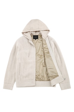 베이지 후드 탈착 방풍안감 크루넥 집업 가디건 (JNSW5D301I2)