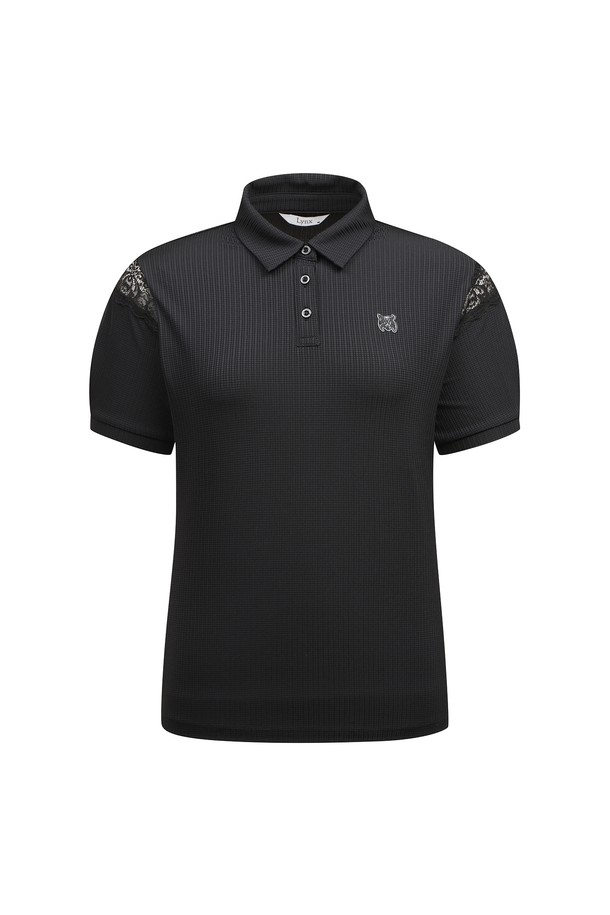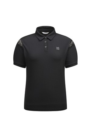 [26SS] 어깨 레이스 포인트 카라 티셔츠 L21F2TO252_BK