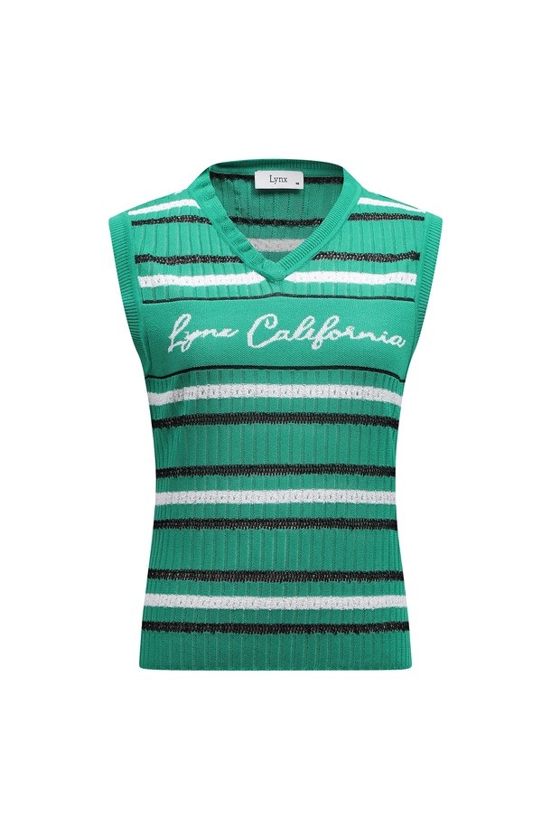[26SS] 여성 스트라이프 패턴 V넥 베스트 L21F2SV255_GN
