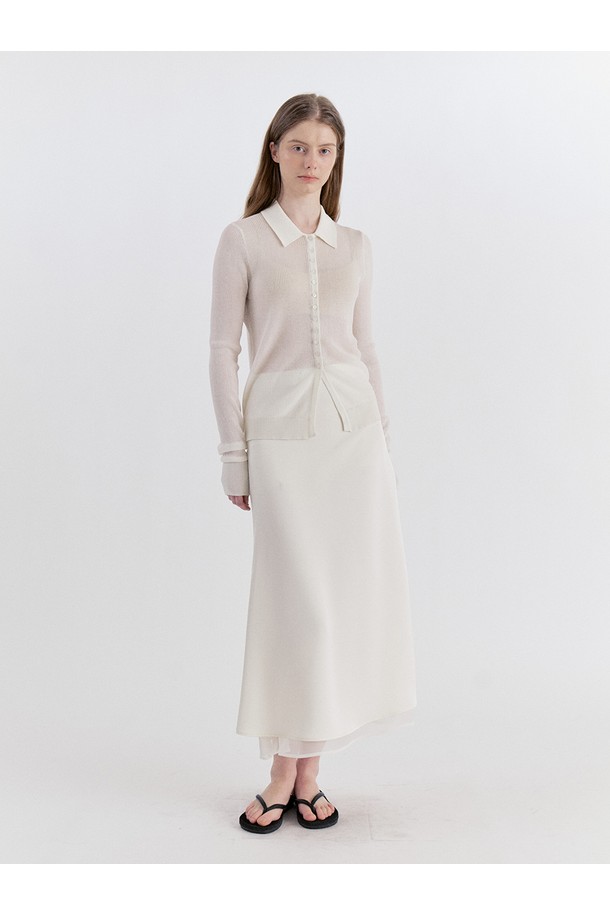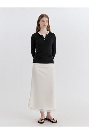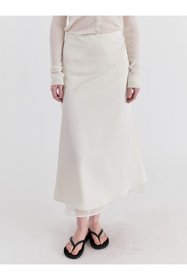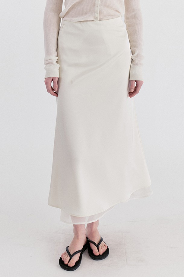Classic Layered Satin Chiffon Long Skirt - Cream