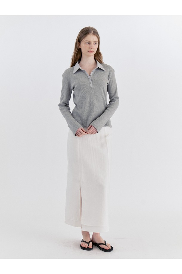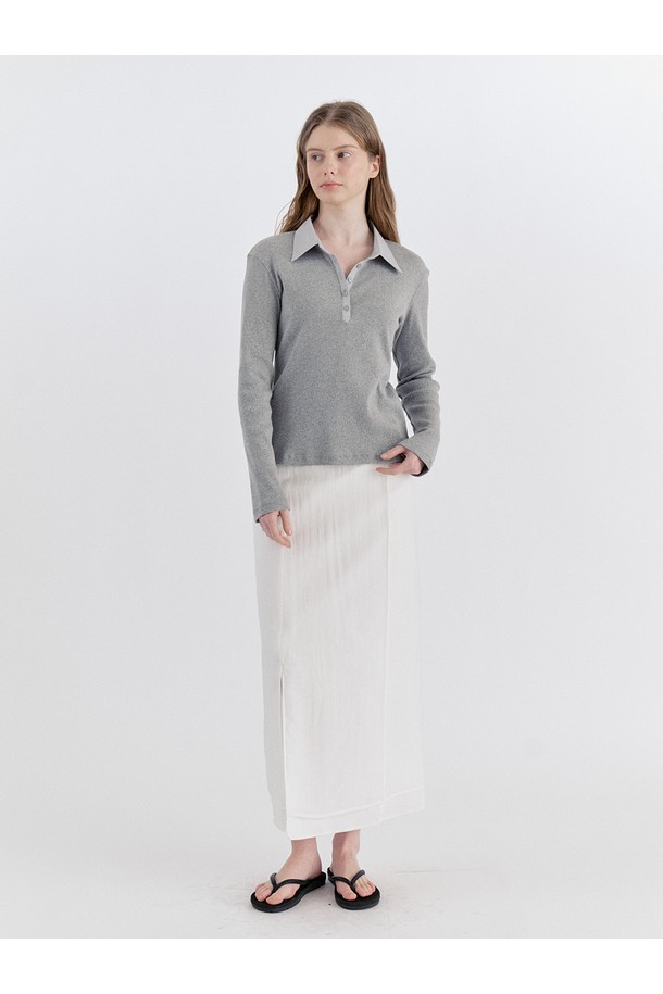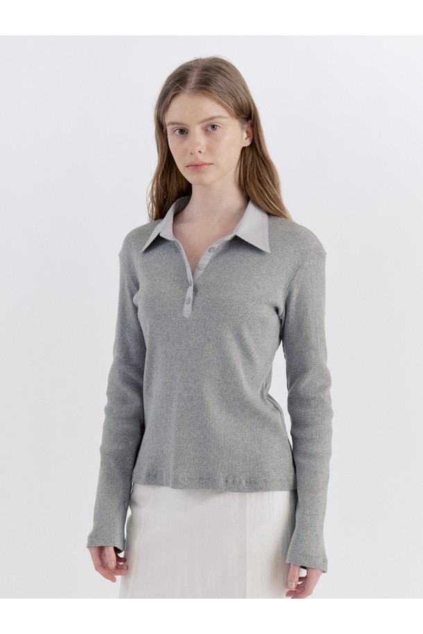 Ribbed Panel Classic Collar T-Shirt - Gray