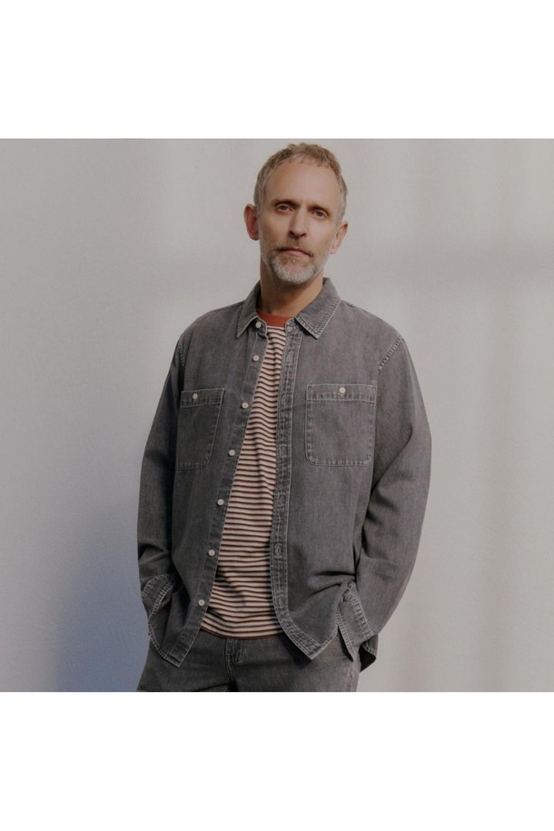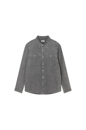 (SET-UP) 코튼 데님 셔츠 그레이