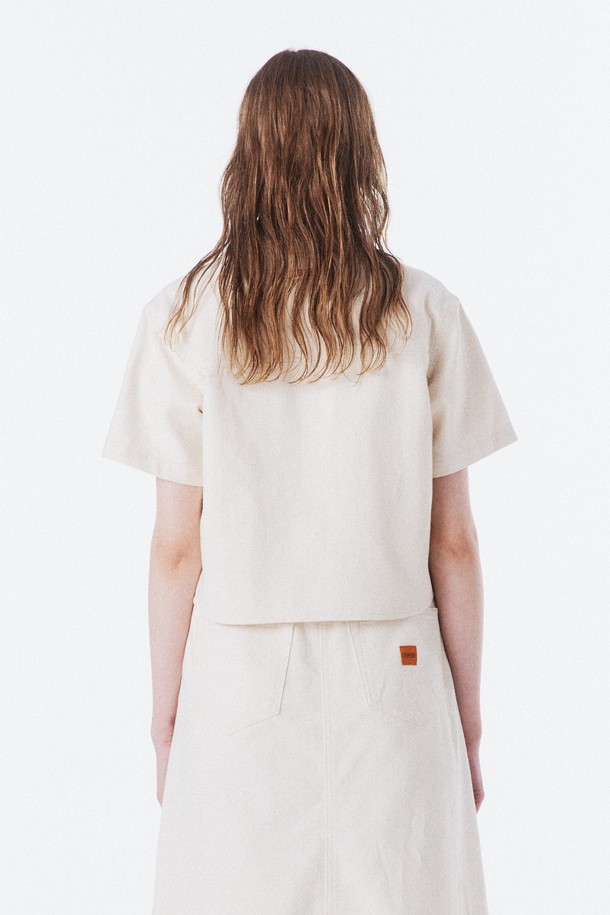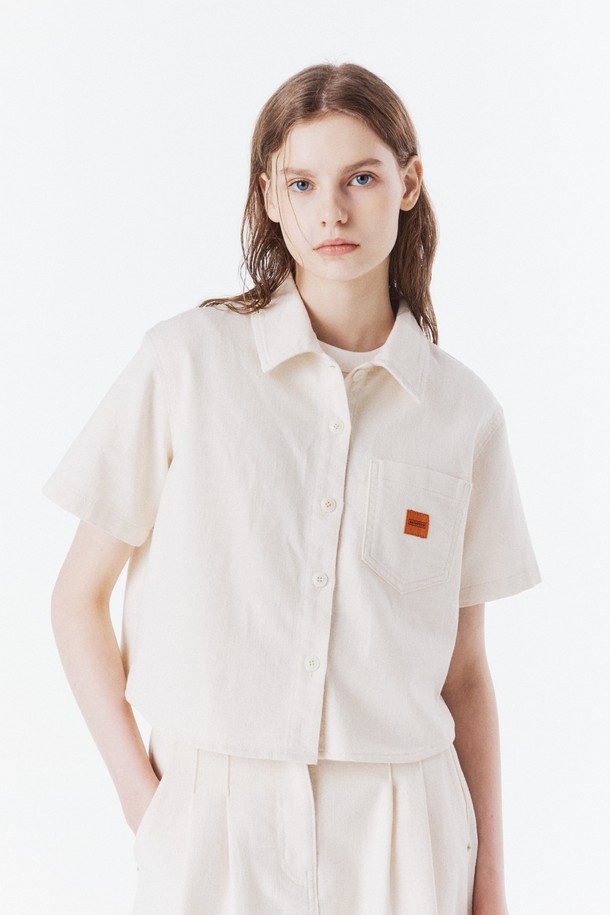 W CROP DENIM HALF SLEEVE SHIRT - IVORY (P262WSH483)
