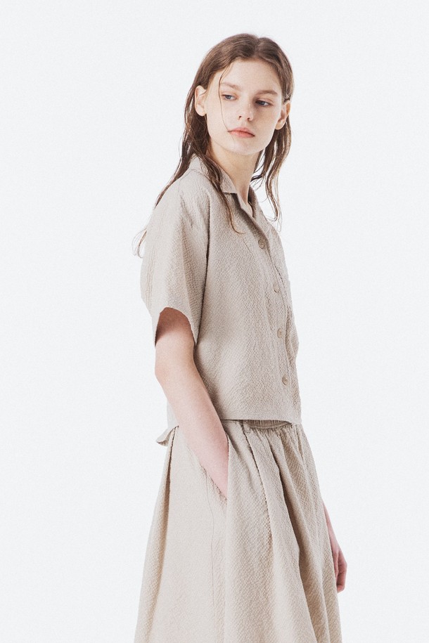 W SEERSUCKER HALF SLEEVE SHIRTKET - L/BEIGE (P262WSH180)