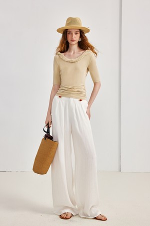 얇은 스트레이트 와이드 레그 뗌-바지 (2컬러)는 미니멀하고 페미닌한 무드를 연출하는 여성용 바지입니다. 비스코스와 나일론 혼방 소재로 제작되어 부드러운 촉감과 편안한 착용감을 선사하며, 얇은 두께감으로 봄, 여름 시즌에 활용하기 좋습니다. 루즈핏의 와이드, 스트레이트 핏으로 체형 커버에 효과적이며, 밴딩 처리되어 편안함을 더했습니다. 화이트와 블랙 두 가지 컬러로 출시되어 데이트룩과 같은 다양한 일상 스타일을 연출할 수 있습니다. 모델 착용 사이즈는 S이며, 모델 신장은 175cm입니다.
