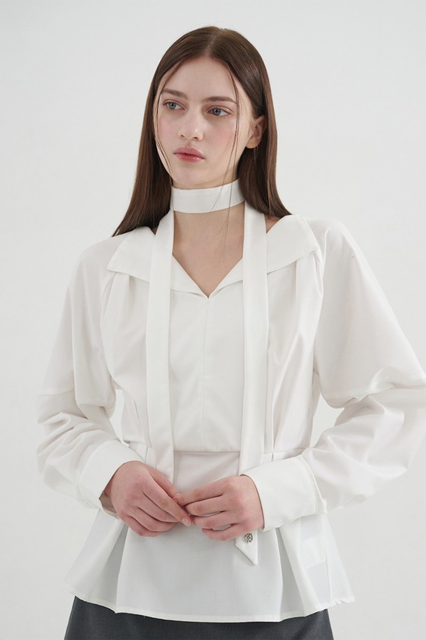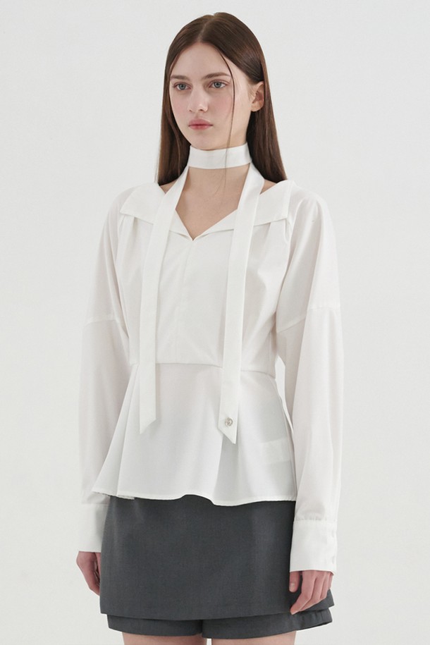 바이샤 오픈 카라 페플럼 블라우스