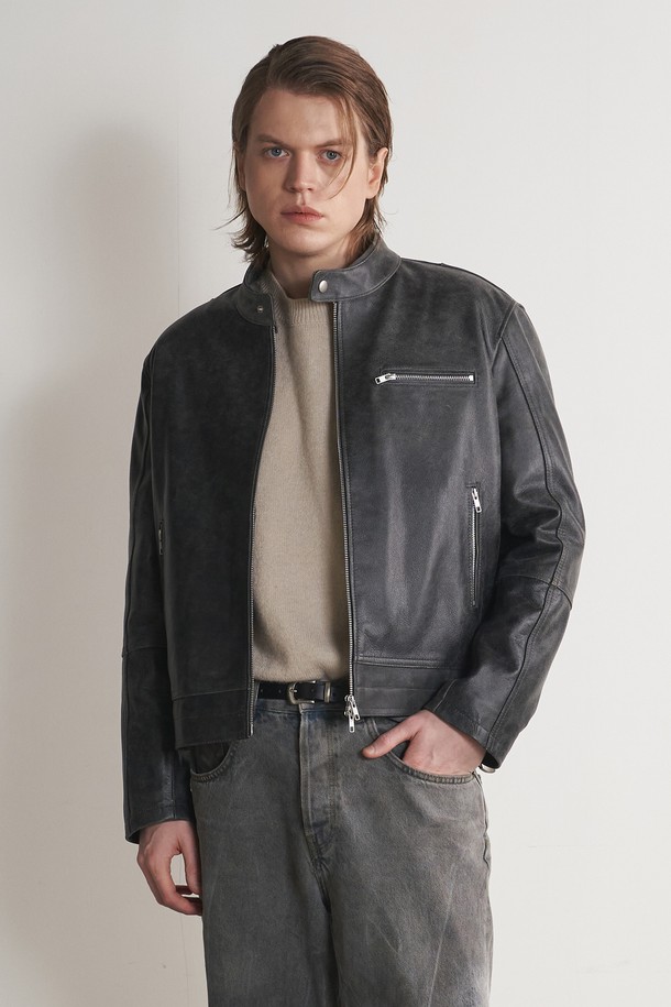 [리얼레더] 카우하이드 워시드 미니멀 레더 자켓 (블랙)