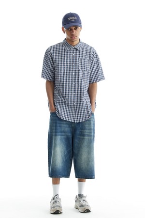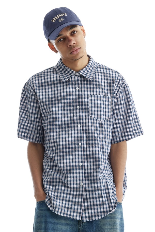 씨알에스디엘 긱시크 타탄 하프 체크 오버핏 반소매 셔츠