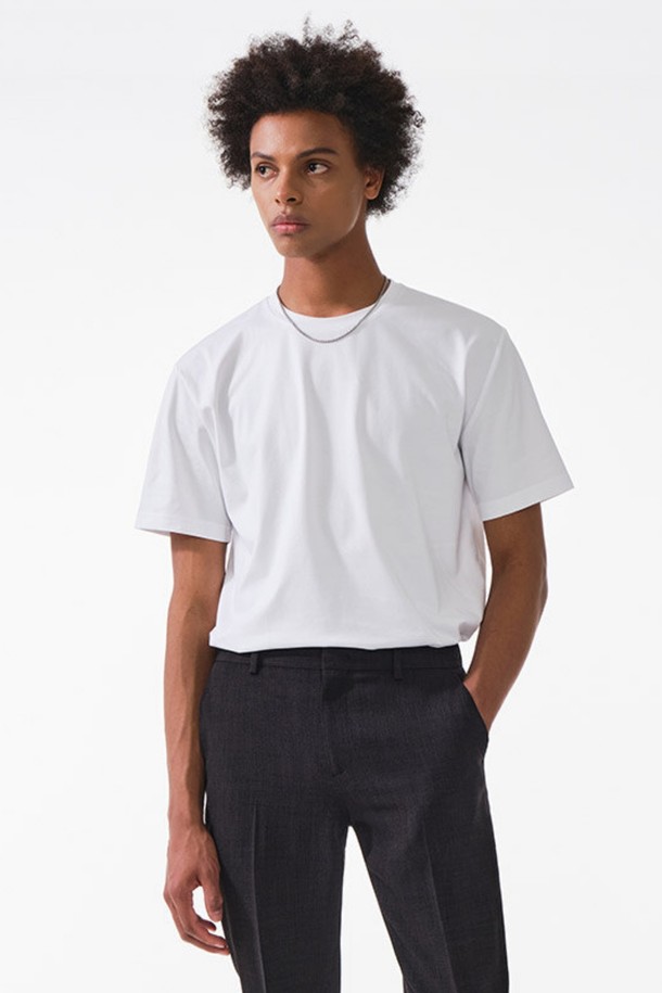 Supima 코튼 라운드넥_화이트 (세미오버핏)