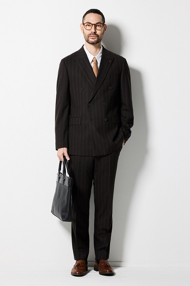[BLACK LABEL] W 스트라이프 수트자켓 브라운 (더블클래식)