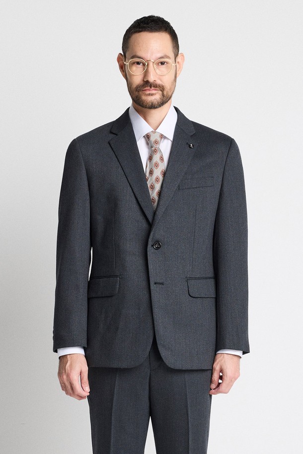 슬림핏 울 혼방 트윌 솔리드 수트자켓 (그린)