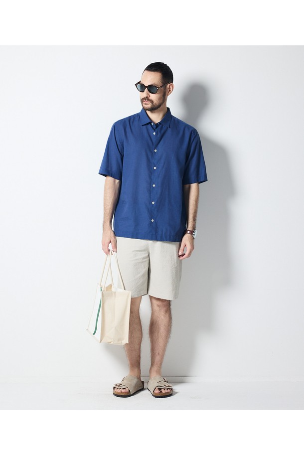 [DIEMS by STCO]린넨 혼방 반팔 솔리드 셔츠_블루 (이지핏)_DDSWB02ESL