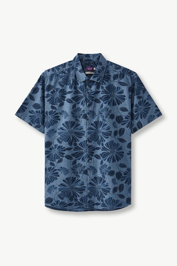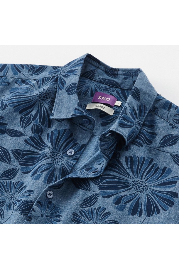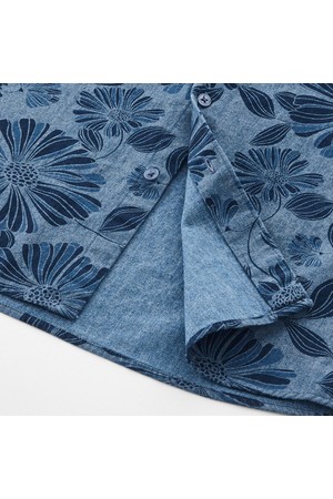 플라워 데님 프린트 반소매 셔츠_블루 (클래식핏)_SDSVB66CFL