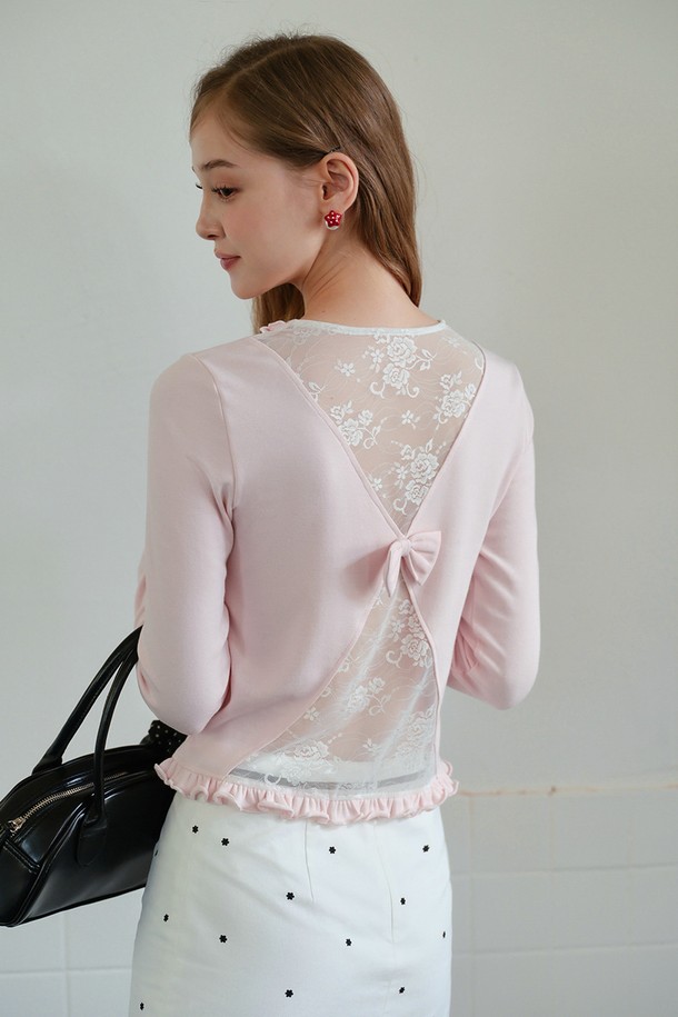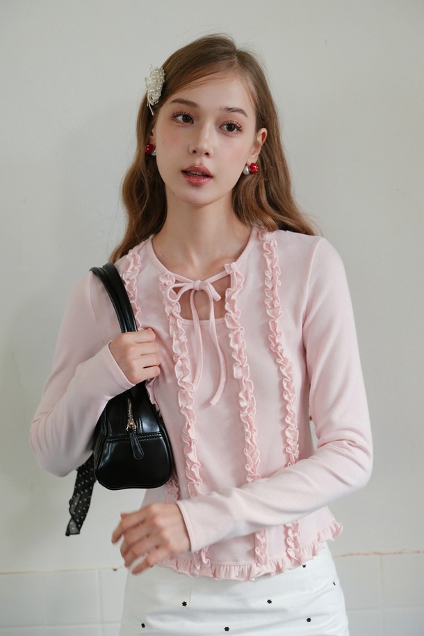 Ruffle lace ribbon long sleeve top