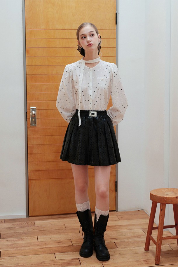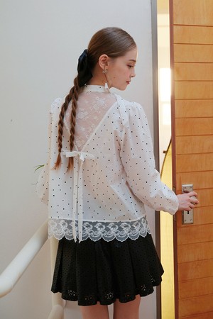 Dot lace ribbon blouse