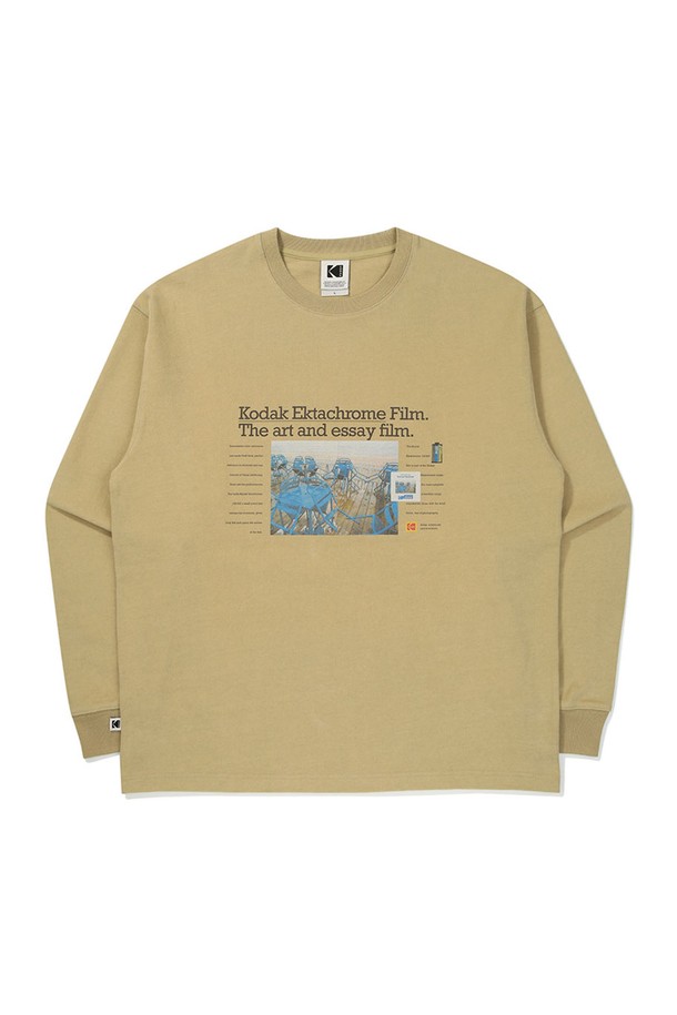 피치기모 그래픽 긴팔 티셔츠 BEIGE