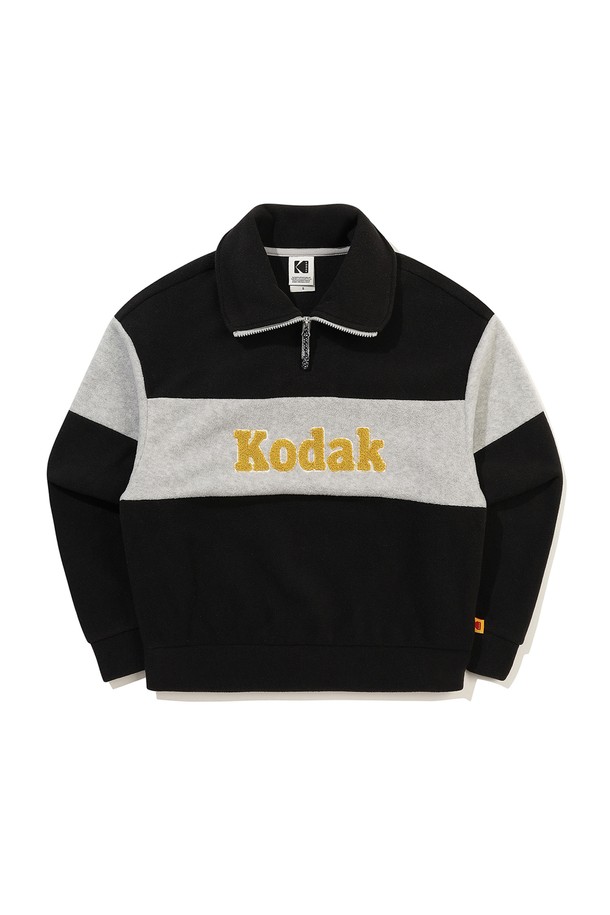 컬러블럭 마이크로플리스 반집업 맨투맨 우먼 BLACK