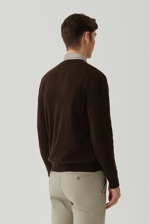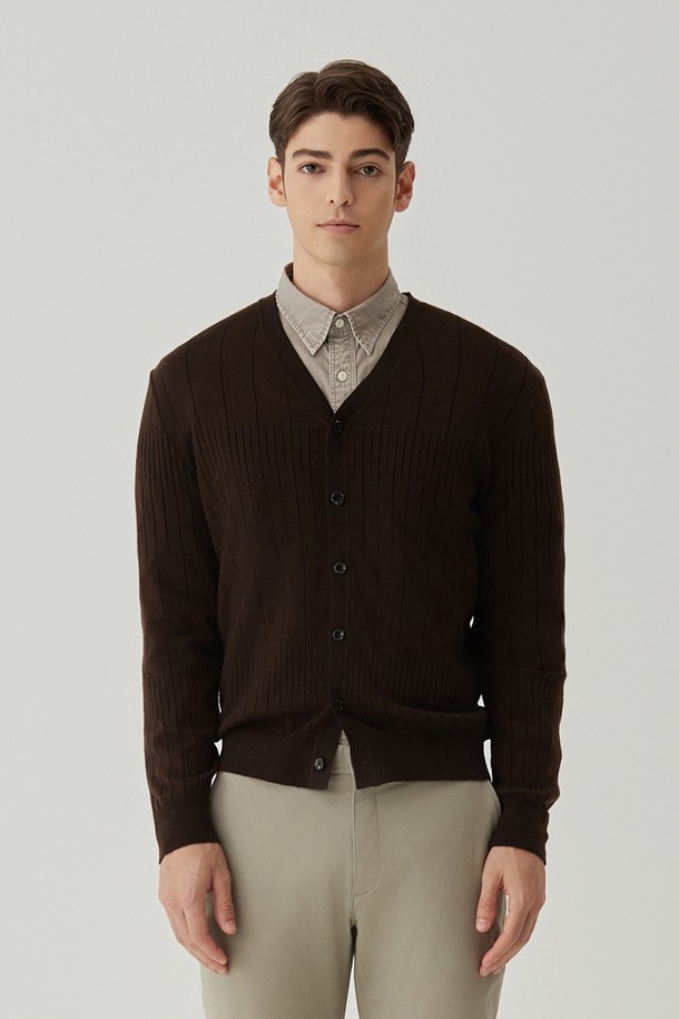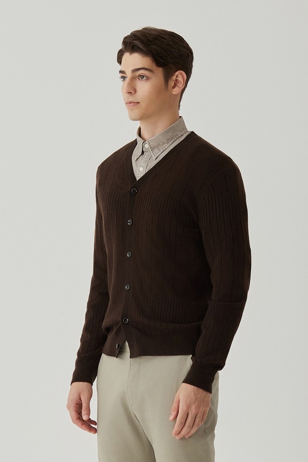 스트라이프 브이넥 가디건 D/브라운(AM0ECD30158)