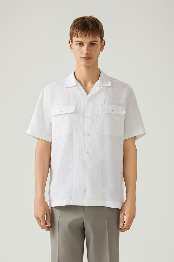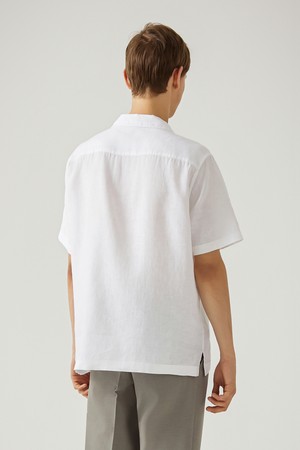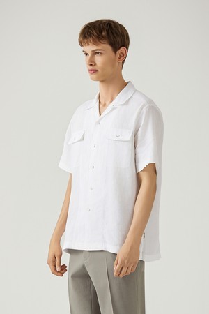 남성 반팔 솔리드 린넨 셔츠 화이트 (AM0EWS25231)
