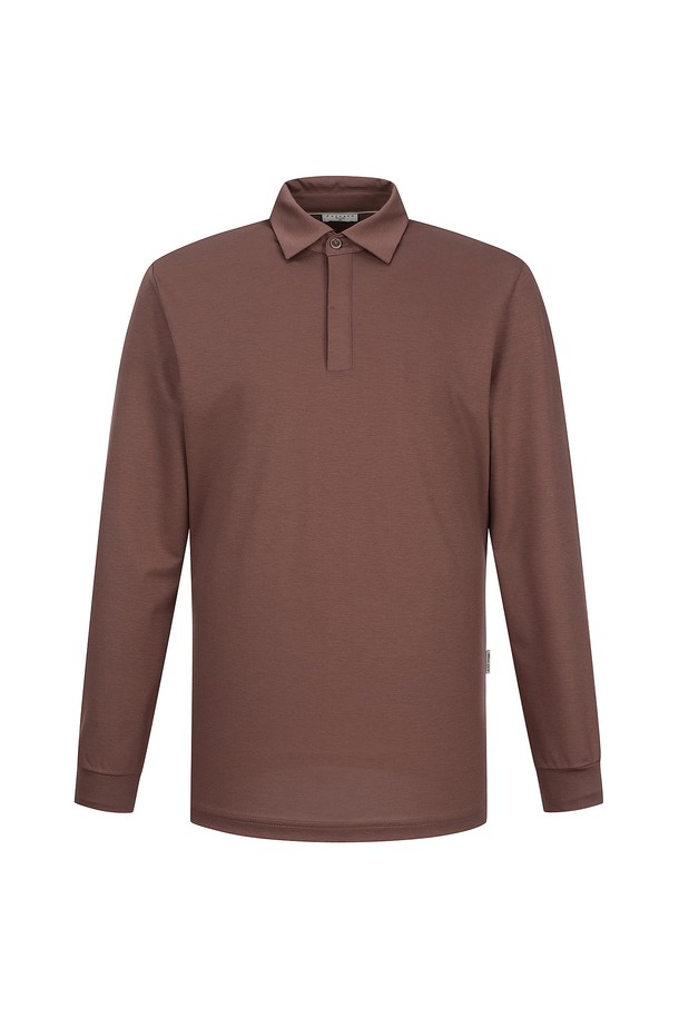 히든마이 솔리드 Y카라 티셔츠 브라운 (AM0EKS10157)