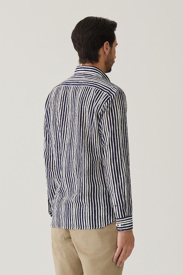 세로 스트라이프 셔츠 네이비 (AM0FTWB10149)