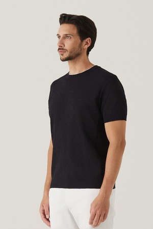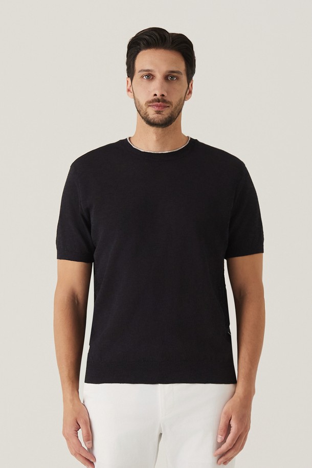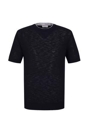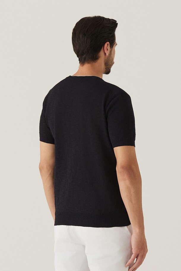 앞판 잔조직 라운드 니트 네이비 (AMSFTSR20149)
